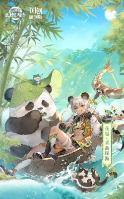 设计理念:夏日漂流探险主题,花鬘乘坐葫芦船,搭配熊猫元素,充满童趣与活力。