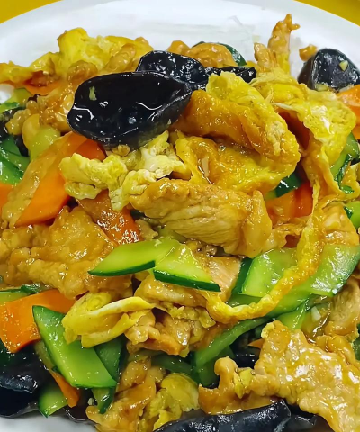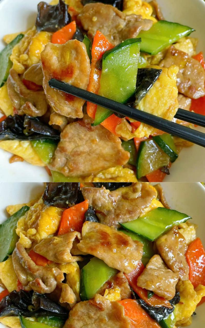 猪里脊黑木耳金针菜黄瓜胡萝卜鸡蛋葱生抽糖水淀粉香油胡椒粉盐