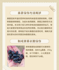 新鲜桑葚难以保存,可以加工成其他的食品,保存,比如桑葚果酱、桑葚酒、果脯之类的,就可以比较长时间的储存,但是就没有鲜食的口感。如果喜欢吃这些加工的的味道的,就可以自己选择这种保存方法。