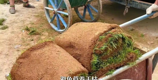 铲取30×30厘米草块,厚度2-3厘米,铺时留0.5-1厘米间隙以防膨胀重叠。