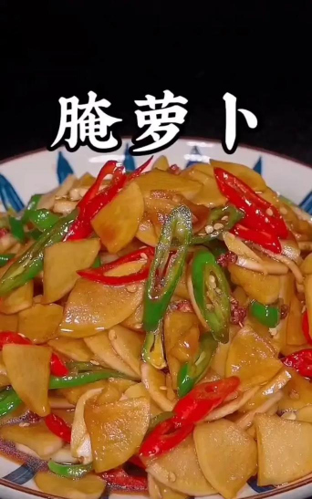 首先将萝卜清洗干净,切成薄片后再切细丝,蒜切成末,葱切成段,辣椒切段备用。锅中烧油,油热后加入葱段、蒜末、干辣椒爆香,加入青萝卜丝翻炒,加入酱油、醋和盐翻炒均匀,盖盖焖煮一分钟后翻炒一下,重复两次,最后收汁出锅。