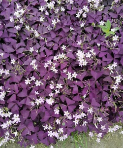特点:叶片呈深紫红色,倒心形,白天展开夜间闭合,花期长(4-11月),开淡粉色或白色小花。耐寒耐旱,适合盆栽或地被植物。