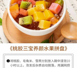 大约用十五克桃胶,用清水浸泡一晚,直到里面没有硬芯,之后再用清水泡洗几遍,洗掉里面的黑色杂质,