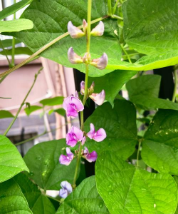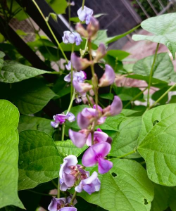 菜豆花(四季豆)菜豆花色彩丰富,有白色、黄色、紫色或红色,总状花序顶生,花冠蝶形,旗瓣宽大,翼瓣和龙骨瓣合生。原产美洲,明代传入中国。