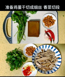 1、芹菜去叶洗净切段,花生米用温水浸泡1小时,姜切末,红椒切丁、蒜切末;