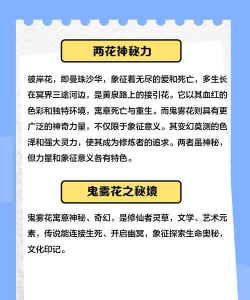 被称为“死神的涟漪”,传说生长在黄泉路上,能召唤鬼魂或连接阴阳两界,花朵鲜艳如血,常被禁忌种植。