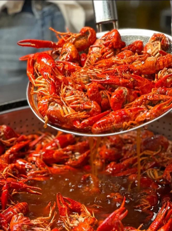 等小龙虾吐尽体内的泥沙后将它刷洗干净备用,再起锅烧油放入葱、姜、蒜、红辣椒、茴香、豆豉、八角、花椒炒出香味,然后倒入处理好的小龙虾翻炒并用食盐、白糖、鸡精调味。