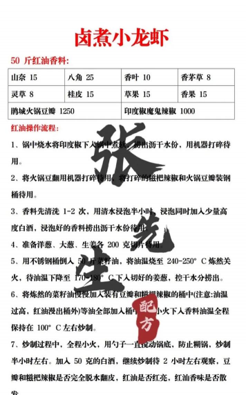 烧小龙虾要准备的香料有花椒、八角、干辣椒、茴香、葱、姜、蒜,烹饪它我们需要先把香料放入油锅中炒香,再加入处理干净的小龙虾、食盐、白糖、鸡精、蚝油,然后倒入开水炖煮,入味后加入鲍鱼汁大火炖十分钟左右,最后加入白芝麻、香油即可。