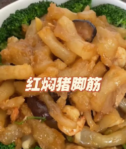 制作猪蹄筋要先将清洗干净的猪蹄筋和清水、生姜、八角倒入高压锅中炖煮四十五分钟左右备用,然后将切好的姜、蒜、辣椒倒入油锅中爆香,再放入猪蹄筋、胡萝卜片翻炒均匀,然后往锅中加入食盐、生抽、老抽、白糖、清水用中小火炖煮即可。