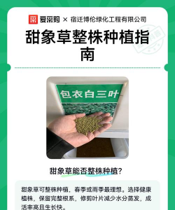 甜象草的种植方法因繁殖方式不同而有所差异(种子繁殖较少见,多采用根茎或种节繁殖),以下是综合种植要点: