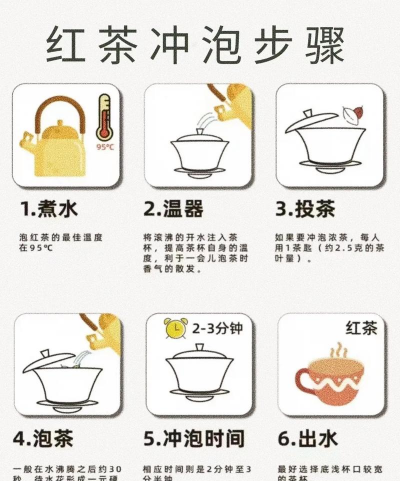 泡红茶注意事项:条形茶一般可以冲泡3-6次,从第二泡开始,每一泡增加15秒左右,可以使茶汤的浓度大致相同。如果是红碎茶,一般只能冲泡2-3次。
