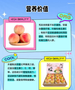 水蜜桃含有丰富的维生素和矿物元素,它含有的维生素和蛋白质比毛桃要高,水蜜桃的食用价值和营养价值都比毛桃要高。
