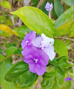 番茉莉原产委内瑞拉、巴西,花朵初开为紫色,夜间香气浓郁,被称为“紫夜香花”,且开花时颜色会由紫渐白或粉红。