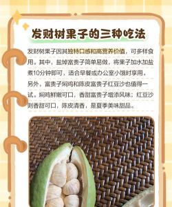 发财树的果实主要用于榨油,这是一种很好的植物油,但70年代后半期,财富树被开发为观赏植物后,很少有人用于榨油。发财树的果实是绿色的天然小点心,可以把破碎的果实放入锅中煮或炒来吃。口感和花生、核桃仁有点相似。