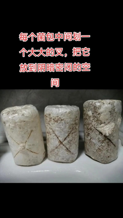 菌砖法:用木模(90×50×12cm)铺膜装料,播种后压实脱模,薄膜包裹发菌。
