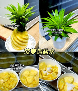 菠萝要泡半小时。菠萝是一种味道、酸甜美味的水果,但它若是直接食用的话会让我们的舌头出现刺痛感,想要避免这种i情况出现就需要将切好的菠萝放入盐水中浸泡,通常只需要让菠萝浸泡半小时左右即可。