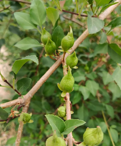 形态:连翘果实为蒴果,呈长卵形或卵形,长1.5-2.5厘米,直径0.5-1.3厘米,表面有纵皱纹和凸起的小斑点,顶端锐尖,基部有小果梗。成熟时果实顶端裂成两瓣并向外翘起,故名“连翘”。