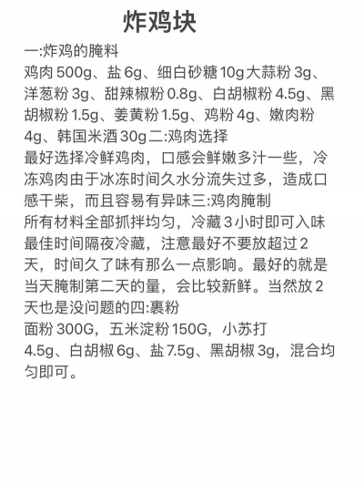 炸鸡块所需材料:鸡腿肉500克、大蒜5瓣、耗油2勺、生抽3勺、蜂蜜1勺、细砂糖1勺、玉米淀粉1勺、面粉2勺,鸡蛋2个、黑胡椒粉、椒盐、盐半勺