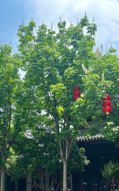 七叶树寿命可达千年,被誉为“风水神树”,象征长寿与平安。在中国传统文化中,其七片小叶的数字“七”被视为吉祥数,代表圆满与团结,民间认为其能带来好运和富贵。传说中,七叶树的果实(娑罗子)被嫦娥带入人间以疗愈疾病,进一步赋予其健康与希望的寓意。
