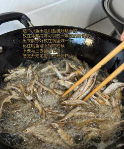 首先将小鱼干清洗一下,辣椒切末,锅中烧油,油热后转小火,下入小鱼干翻炒,加入姜、料酒、生抽和水焖煮一下使其入味后盛出。接着将辣椒炒软,加入油、盐、蒜瓣炒香,倒入小鱼干翻炒,加入耗油翻炒均匀即可出锅。