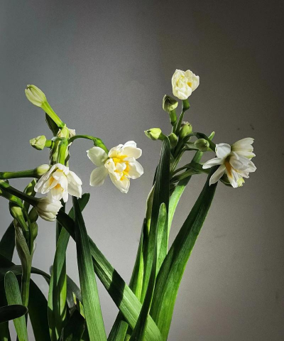 水仙的枝条直立。它的开花时间通常在春季。花的颜色是白色的。是中国十大名花之一。