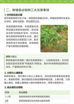 注意事项 :种植前需做好土壤改良,确保排水性;树苗运输时避免损伤根系。核桃树结果周期长,需长期养护。