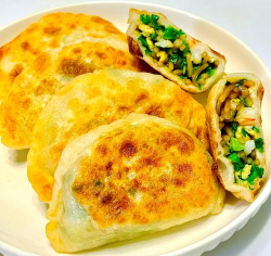 第三步,煎好之后,饼铛提前预热,刷上油,两面各煎三分钟,煎好之后,就可以出锅吃了,这样做出的韭菜盒子,蓬松宣软,韭菜鲜香,非常的美味。