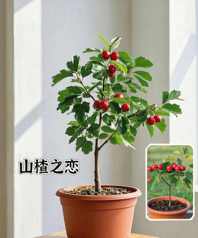 盆栽山楂需选择大花盆,保证充足肥水,盛夏每两天浇水一次。