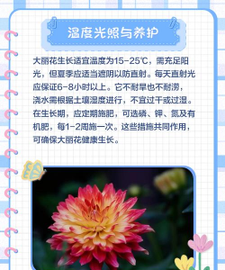 大丽花原产于热带地区,它喜欢温暖、湿润的环境,适宜生长温度为18℃-25℃,最低温度不低于10℃。大丽花对光照要求较高,它需要充足的日光照射才能生长茁壮。同时,大丽花对土壤的要求也比较高,它需要土壤肥沃、排水良好、通风性好的环境。