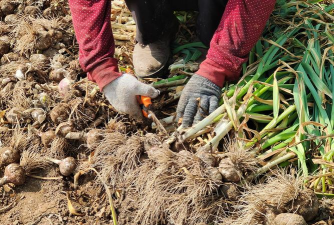 收获大蒜一般是在5月中下旬到6月份之间,差不多在收获蒜苔后25天就能采收大蒜了。不过,在进行采收前也要看下大蒜是否成熟,当它底部的叶子发黄,且蒜皮变薄的时候就能进行了。当大蒜已经成熟时,就应该尽快的把它采收好,不然遭遇到降雨天气的时候,蒜皮就容易腐烂,要确保大蒜收获时品质优良。