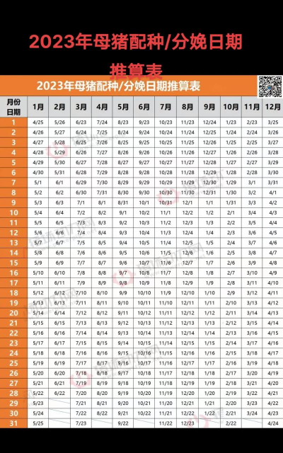 为了准确预测母猪的分娩日期,养殖户需要了解和掌握一些常用的推算法。这些方法有助于提前做好准备工作,确保母猪和新生仔猪的健康。接下来将详细介绍四种常用的推算母猪预产期的方法
