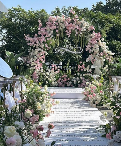 花门作为婚礼的入口,其布置同样至关重要。一个充满创意和个性的花门,不仅能够为宾客们带来惊喜和愉悦,更能够凸显出整场婚礼的主题和氛围。在选择花材时,不妨考虑一些具有季节性和市场资源的花卉,如春天的郁金香、夏天的玫瑰或秋天的菊花等。同时,注重花卉的搭配和颜色的搭配也是至关重要的。通过这样的布置方式,不仅能够为宾客们带来一场视觉盛宴,更能够让他们感受到整场婚礼所蕴含的浪漫与美好。