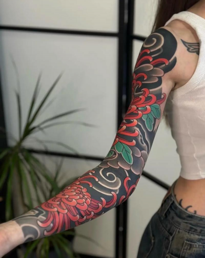 传统风格以东方元素为主,如龙、凤、锦鲤、牡丹、菊花、海浪、般若(日本鬼面)、老虎等,强调扎实的线条和浓郁的色彩,具有强烈的文化象征意义。
