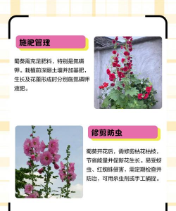 蜀葵的栽培与养护并不复杂,只要掌握了正确的栽植、施肥、浇水、病虫害防治以及繁殖方法,就能让蜀葵在夏日里顺利开花。无论是作为观赏植物还是园艺造景,蜀葵都是一个非常不错的选择。