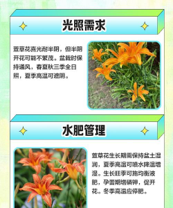 萱草喜欢充足的阳光,但夏季高温时需要注意遮荫,以免叶片灼伤。在生长过程中,萱草适宜的温度范围为15-25℃,冬季最低温度不宜低于5℃。在寒冷地区种植萱草时,需采取保暖措施,如覆盖保温膜等。