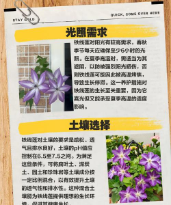 铁线莲喜欢排水良好、富含有机质的土壤。在栽种前,应选用疏松、透气的土壤,并适当添加腐熟的有机肥,为铁线莲的生长提供充足的养分。铁线莲的根系较为敏感,因此在日常养护中,要注意保持土壤的湿润度,避免过干或过湿。