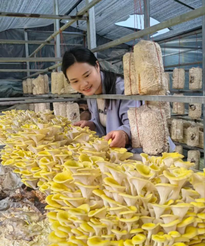 菇盖展开至金黄色时采收,采收前停止喷水;