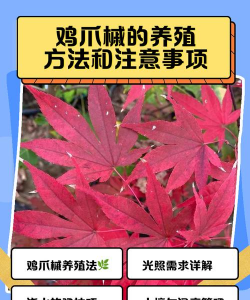 鸡爪械生命力较强,露地栽培宜选地势高燥向阳、土壤疏松肥沃士层深厚的地方。忌栽在低洼积水、土壤黏重的地方,否则会生长不良。栽植前深翻土壤并施入腐熟有机肥。栽植时宜带土坨,以便保护根系,提高成活率。栽后浇足水。盆栽鸡爪械,可用腐叶土、园土和少量河沙混合配制的培养土另加少量腐熟饼肥末做基肥。鸡爪械多用播种法繁殖。10月份采种,次年春播,当年生小苗高达30~50厘米时进行分栽。