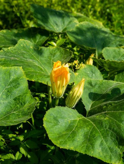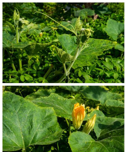 雌雄异花同株:南瓜花分为雄花(谎花)和雌花(果花):