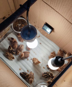 ①调节温湿度:放养蝇蛹前,将养蝇房温度调节到24~30℃,相对湿度调节到50%~70%。