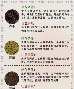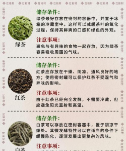 1.绿茶:绿茶是一种未发酵茶,其品质容易受到氧气、温度和湿度的影响。绿茶需要存放在阴凉、干燥、通风的环境中,最好使用密封容器存放。