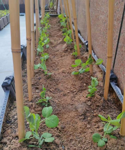 植株抽蔓后需搭设1.8-2米高的支架(如人字架或尼龙线网),引导蔓茎攀爬以改善通风透光。