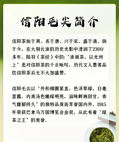 信阳毛尖,作为中国绿茶的瑰宝,自古以来便以其独特的香气和口感赢得了无数茶客的喜爱。它不仅是一款美味的饮品,更是一款具有丰富营养价值的保健茶。下面,就让我们一起来探讨喝信阳毛尖的诸多好处吧。
