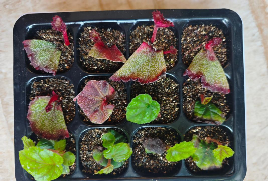 四季秋海棠的叶片可带叶柄插入基质,或平铺在湿润土壤上,叶脉处可生根发芽。