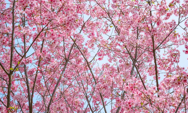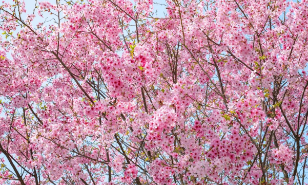 早樱(2-3月)与晚樱(3-4月)相继开放,如湖南省植物园的染井吉野樱、浔龙河樱花谷的万株樱花等。花色以粉白为主,花瓣顶端有缺口是其标志特征。