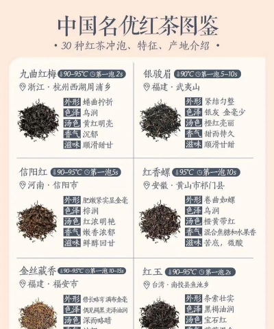 1.正山小种:又被称为“金骏眉”,是红茶的鼻祖,产自中国武夷山。其干茶色泽乌润,茶汤橙黄至红褐色,具有独特的桂圆汤香和松烟香,口感醇厚,回甘强。