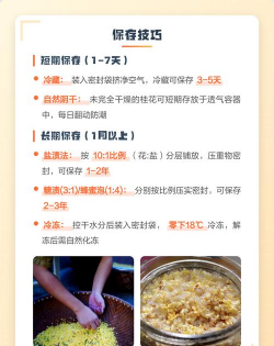 如果想要长期保存桂花,可以采用干燥法。将桂花均匀地铺在干净的纱布或纸上,放在通风干燥的地方晾干,或者用微波炉低温烘干。干燥后的桂花可以装入密封罐中保存,放在阴凉干燥处,可以保存数月至一年。