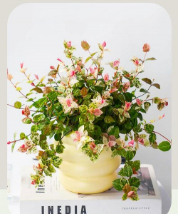 特点 :藤蔓植物,叶片呈绿色、白色、黄色交织,阳光充足时泛粉色,适合阳台或窗台垂吊。