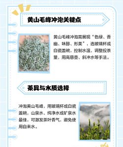 1、不要久泡:黄山毛峰不宜久泡,否则茶汤会变得苦涩。一般,每泡的时间控制在30秒至1分钟之间为宜。随着冲泡次数的增加,可适当延长冲泡时间。