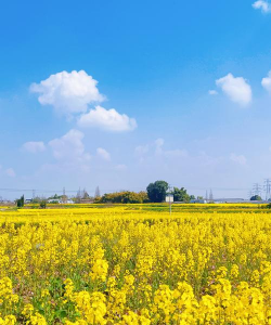 油菜花的景观具有鲜明的立体感和画面感。这种特点主要得益于油菜花的生长形态和色彩。油菜花通常成片生长,形成一片金黄色的花海,这种大面积的同一色调为画面提供了丰富的层次感。同时,油菜花的茎叶和花朵高低错落,增加了景观的深度和立体感。当风吹过时,花海会呈现出动态的波纹,进一步增强了画面的生动性。这种丰富的视觉元素共同构成了一幅充满活力和美感的画面。